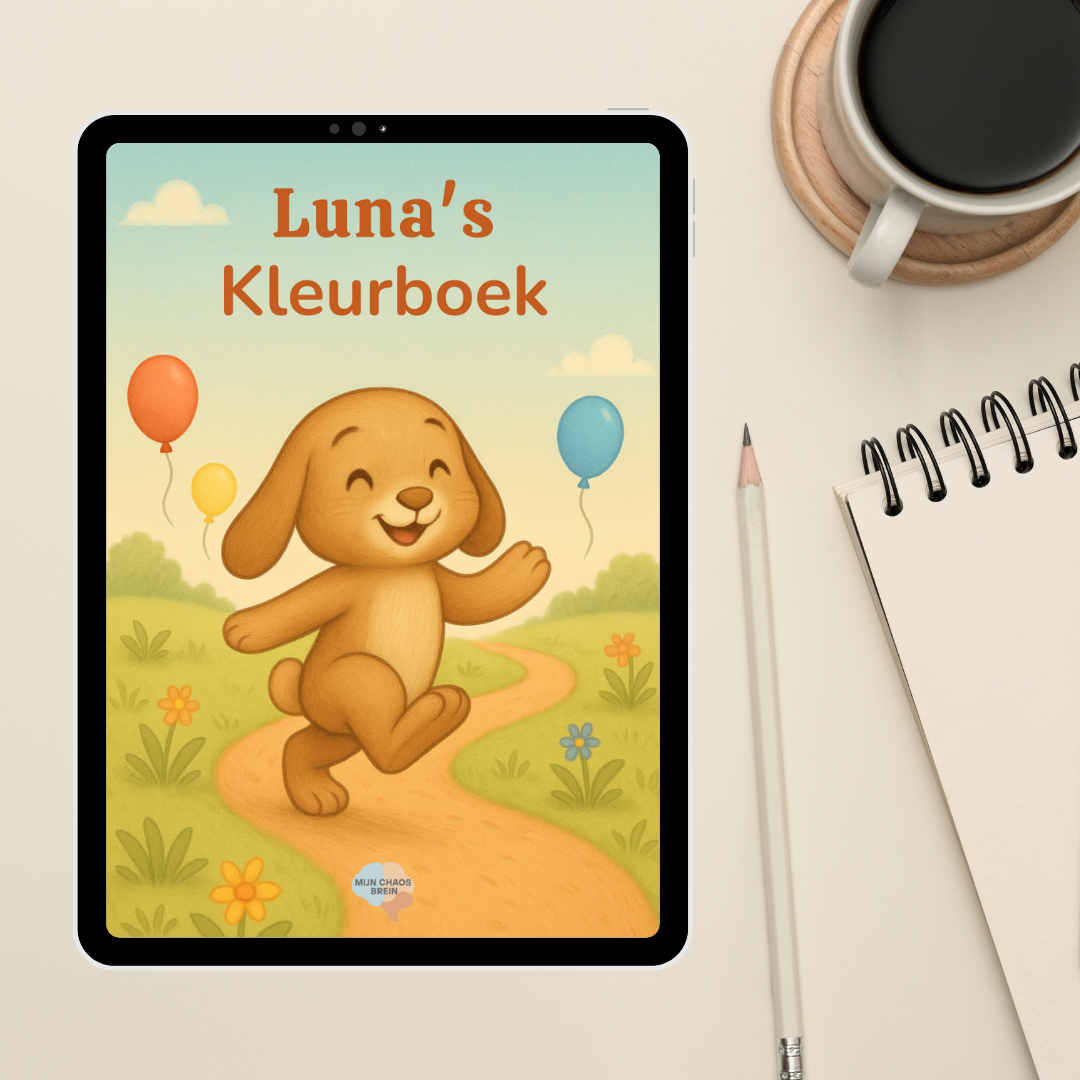 🧠 Dit kleurboek is een waardevolle aanvulling op het boekje "Waar Luna’s hoofd soms een achtbaan is", en helpt kinderen op een speelse manier verder te verbinden met het verhaal van Luna.