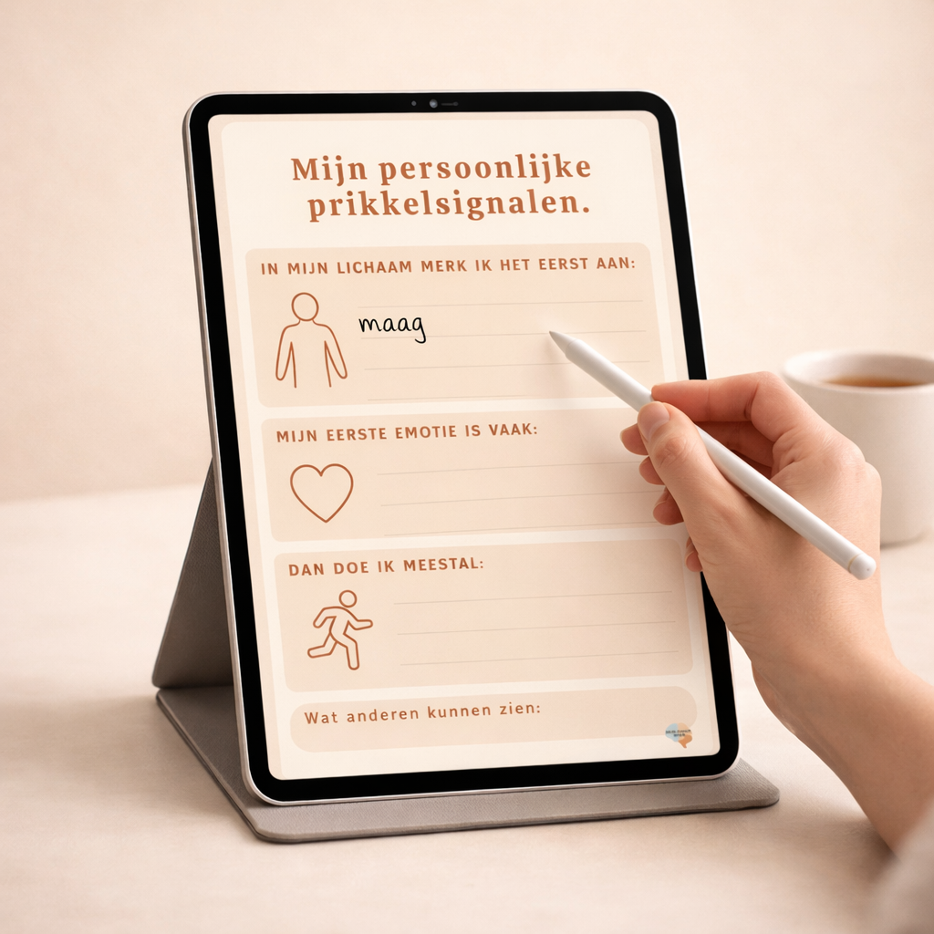 Dit digitale product is voor volwassenen. Dit product is geschikt voor iedereen die zich herkent in een druk hoofd, sterke emoties of meer behoefte heeft aan rust en overzicht.