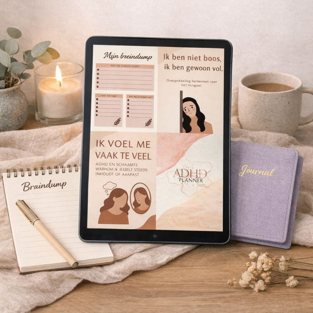 Deze producten vullen elkaar aan. Je werkt aan inzicht, emotie en structuur tegelijk. Dat zorgt voor meer overzicht in je hoofd, minder overprikkeling en meer mildheid richting jezelf. Je hoeft niet te kiezen waar je moet beginnen, alles wat je nodig hebt zit hier al in.